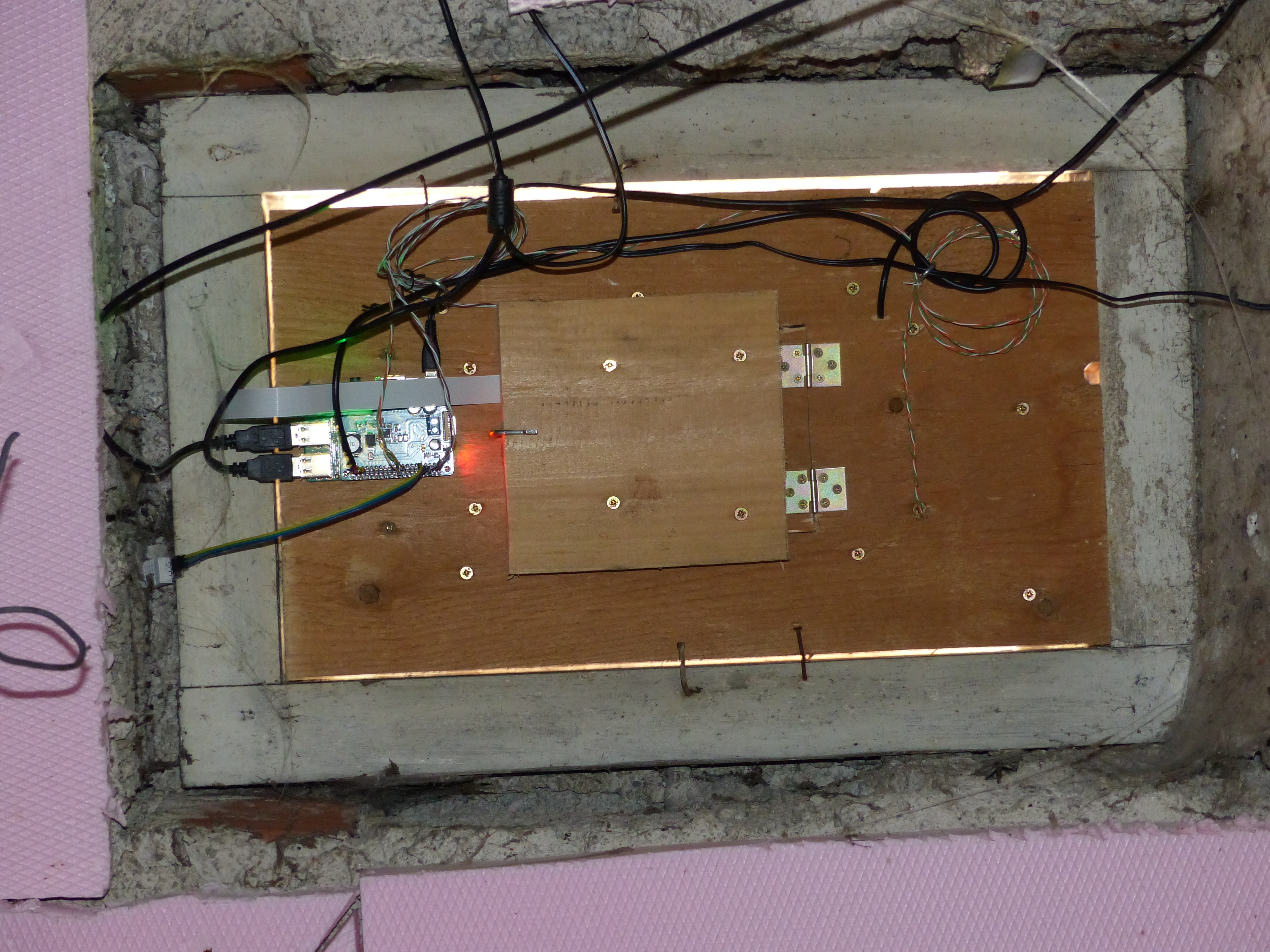 Jedes Jahr habe ich den Kasten etwas weiter entwickelt: Eine Kamera, eine Klappe um hineingreifen zu können, eine zweite Kamera und Temperatursensoren.